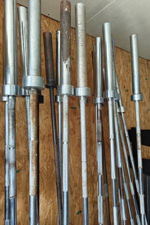 Olympic-style barbells with 2" sleeves and knurled grips. All bars are fully functional and suitable for training. Condition ranges from lightly used to visibly worn. Sold individually—come select from the available lot. Ideal for home gyms, commercial setups, or budget-conscious lifters.