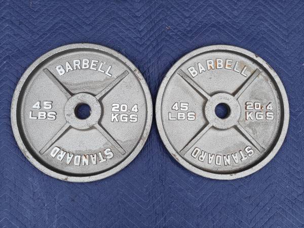 π Search terms: Olympic weight plates, 45 LB barbell plates, standard cast iron weights, dual-unit gym plates, garage gym gear, strength training equipment