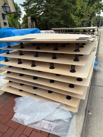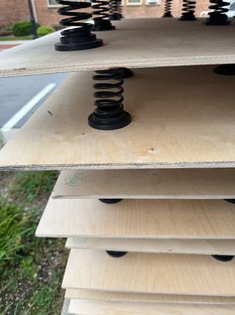 I have a full set of Baltic birch Palmer springs floor decks for sale. It’s 42’x42’. They are all in good to very good condition. If you are looking for a new set of spring deck like this, it will cost you over 12,000 bucks plus a huge shipping charge for over $2000. You can get this set for only $6500, less than half of the price new. You get a great deal.