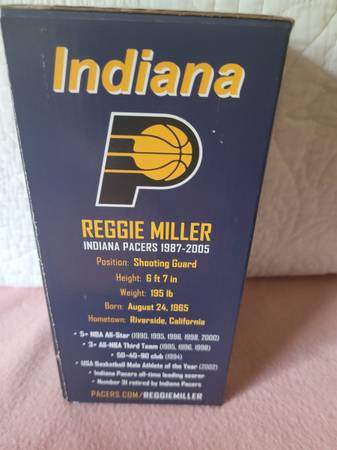 Hall Of Famer "Reggie Miller" in a Collectable Legends edition Bobblehead.