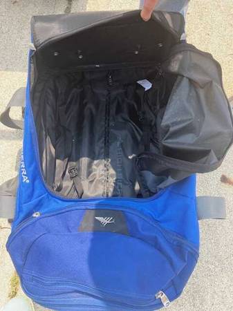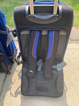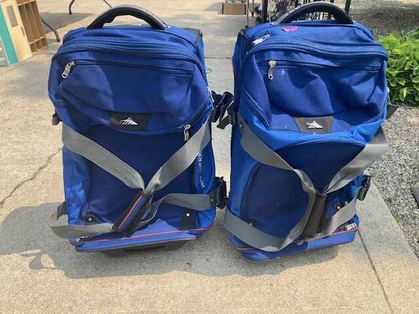 Spacious High Sierra duffel bag and backpack. Dimensions: 28.0" x 13.4" x 12.0" Drop-bottom packing ✓ 2 Exterior zip pockets ✓ Telescoping pull handle ✓ Grab handles at top, front, and bottom Very lightly used condition. Set of 2