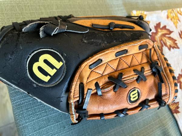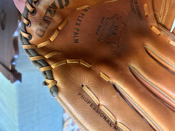 1 MIZUNO PRO RIGHT HANDER VERY GOOD CONDITION $20.00 THIS MITT HAD A BALL TAPED IN IT FOR BREAKING IN !!!! 1 WILSON LEFT HANDER SOFTBALL VERY GOOD CONDITION $20.00