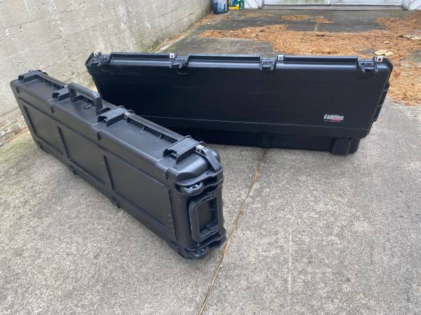 Two SKB 3i-5014-6 protective cases. Waterproof, shockproof, lockable, customizable. Interior dementions 55”x14”x6”. $150 each