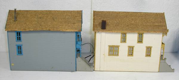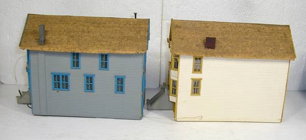 The models were taken from a working layout that sat idle for a while, so they are dusty/dirty with a few minor flaws. Some need paint touch-up or re-paint. The roof on 2 is not glued. You may want to leave it that way for access, although they are open underneath completely. The glue is drying-out, so you may have to do some re-gluing.