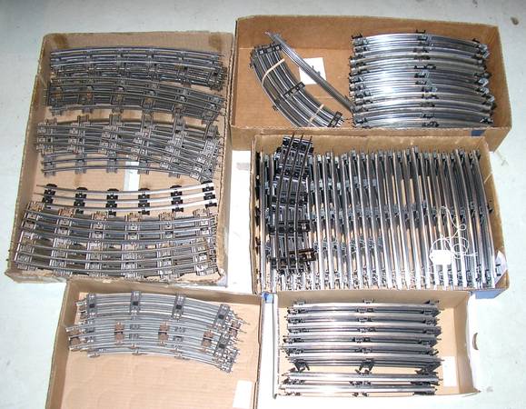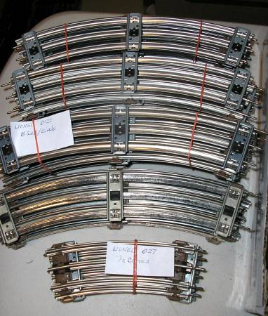Selling 1 or multiple sections of used O gauge and O27 gauge model train track, most marked LIONEL, some K-LINE, some unmarked. Some sections look like new, some are dirty and/or show surface rust (cleanable). I have hundreds of sections of both O gauge and O27 gauge. I have straights, curves up to O72 diameter, and short sections. First come gets first choice.