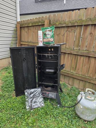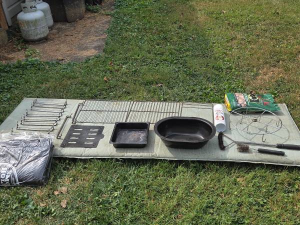 All parts included. Ignition works, door locks. Extra things include hanging rack, two grate cleaning brushes, grate cleaner, unopened cover, unopened bag of applewood chips