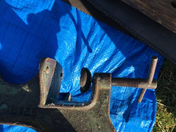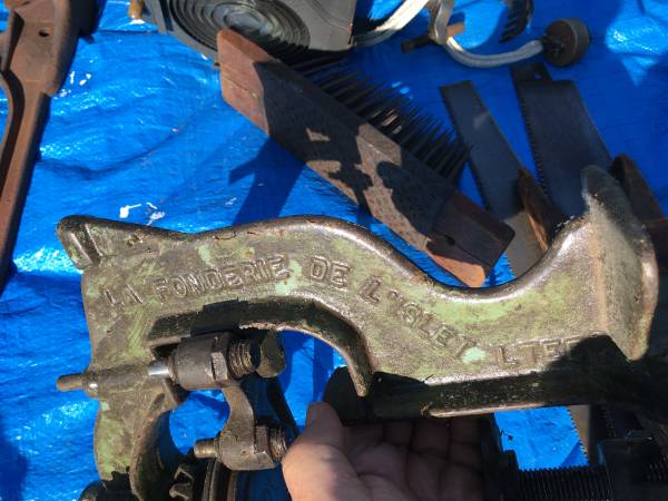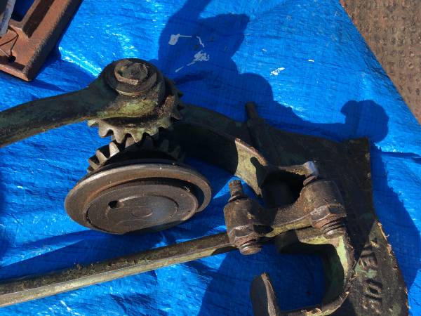 Interesting metal workers tool. Looks like it is used to seal lids on cylinders. Solid and very well made. Mounts to sturdy bench top. Probably dates from the 1950's?