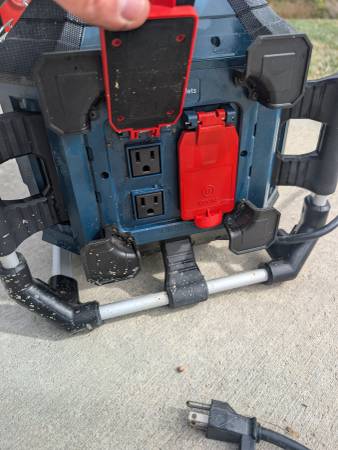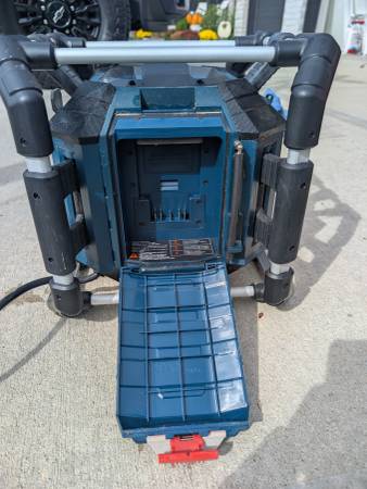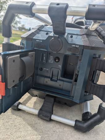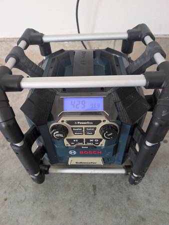 Bosch PowerBox jobsite radio – excellent sound and fully functional. Bluetooth, AM/FM, and USB charging ports all work great. Used lightly and kept indoors most of the time. Minor wear from use but...
