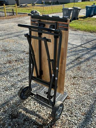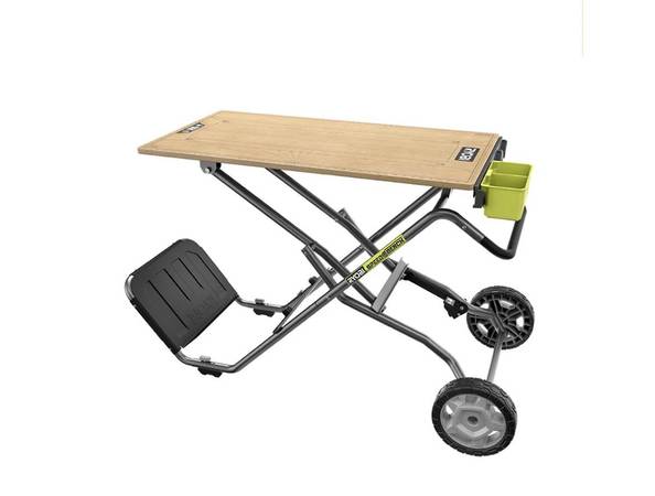 The RYOBI SPEED BENCH Mobile Workstation is a 2-in-1 product, uniquely designed to transform from cart to workbench and back. Effortlessly set up with one fluid motion, allowing you to work and store anywhere. In workbench orientation, utilize the large 42" x 22" durable wood work surface with a 300 lb. weight capacity.