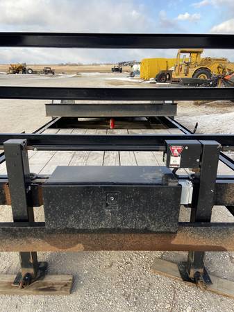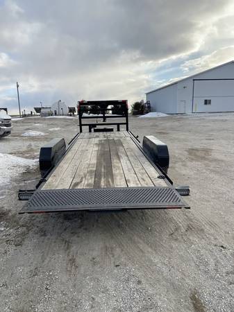 24' Retco Tip Deck Trailer with a 8' Deck for sale. Made by Rettig Enterprises, Inc. It has 7" Channel Frame. 24' Tip Deck x-men 16'' centers,, cylinder. Jeep type fenders 14 k Jacks w motor kit & landing gear w/ drop leg, battery, 16" 10 ply tires, 8 hole wheels, spare tire mount, 83 1/2" between fender wells, Black in color. 7000# drop axles, breakaway, gooseneck toolbox. Special Built March 2023.GVWR is 6350 KG (14,000)Lbs.