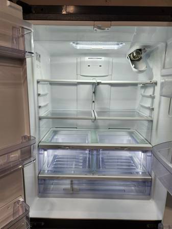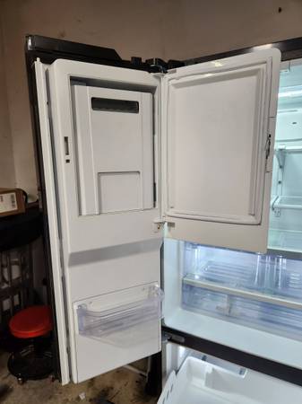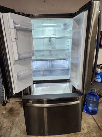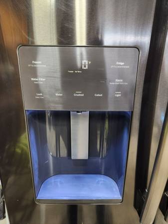 Double door refrigerator and pull out drawer freezer. Touch screen. Water/ice maker. Works great. Waterline never used. Text. 317 5six0 7 twotwo8