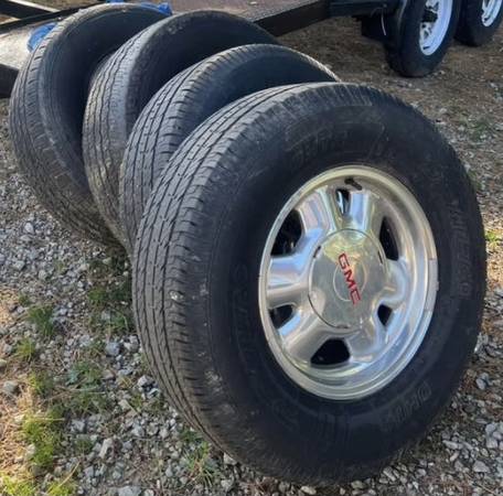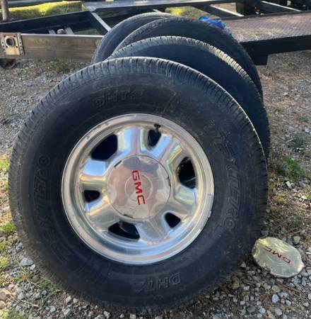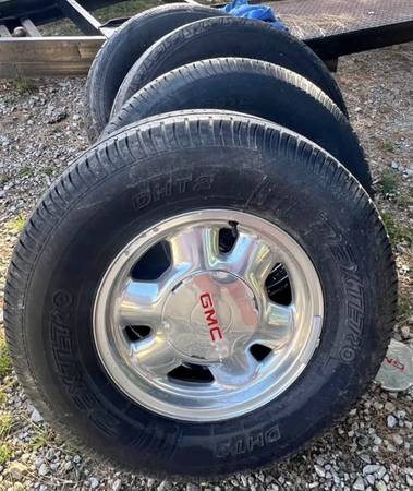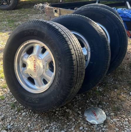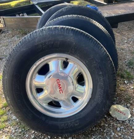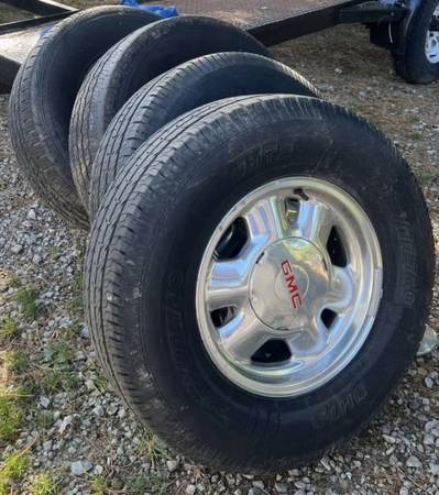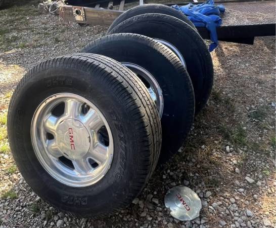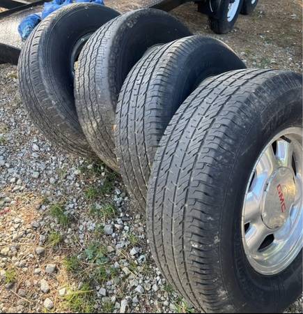 Nice set of 16 inch 6 lug wheels for GMC or Chevrolet truck. Fits 99-03 GM truck platform Silverado sierra yukon Denali suburban. Tires aren’t the greatest but hold air. $700 for all 4 $200 a piece...